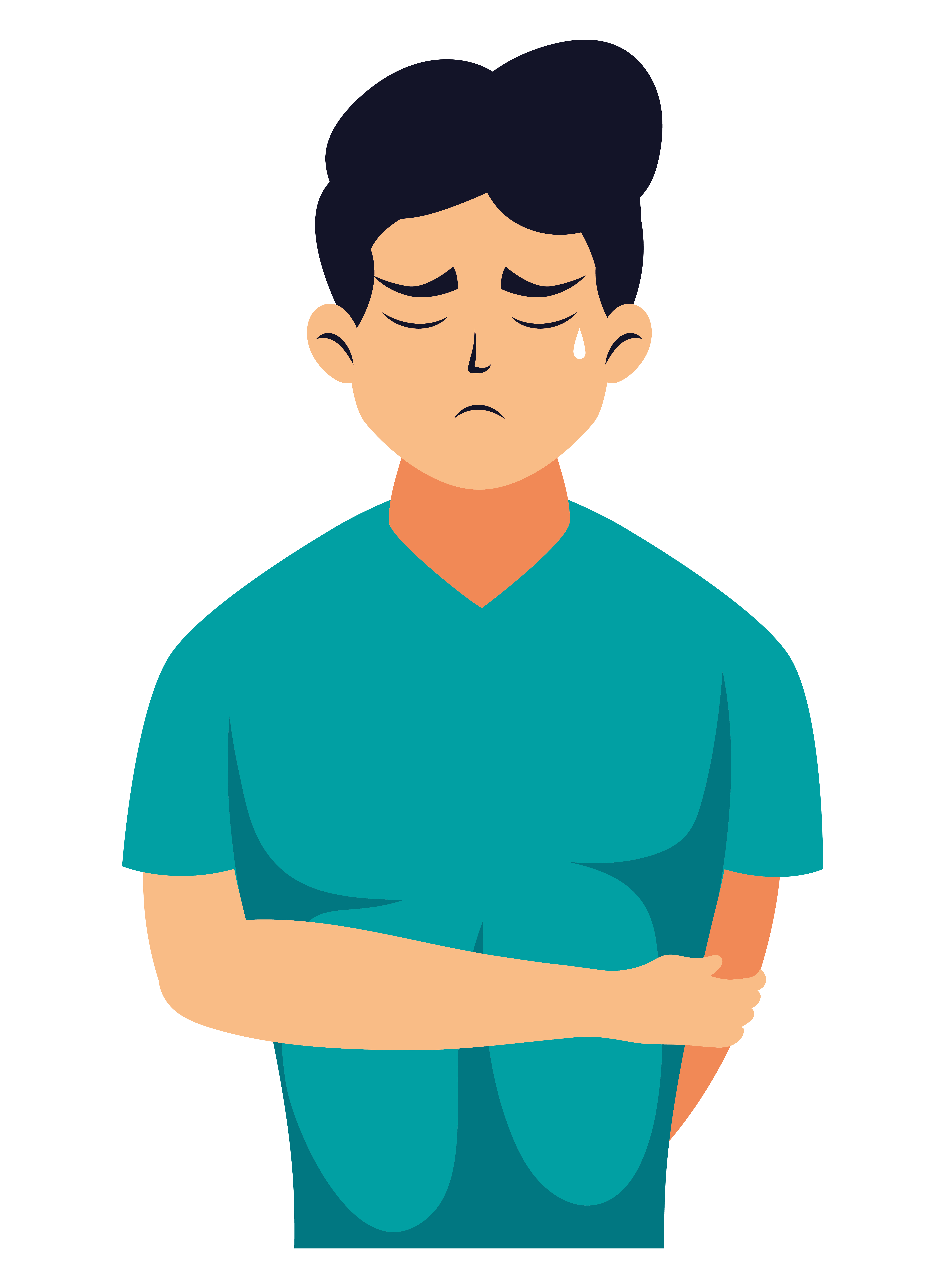 ▶ 갈비뼈, 가슴, 복부에 날카롭고 찌르는 듯한 통증